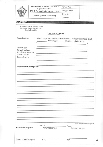 Koordinator Kegiatan, Yang Melaporkan, Kasubag Hukmas,