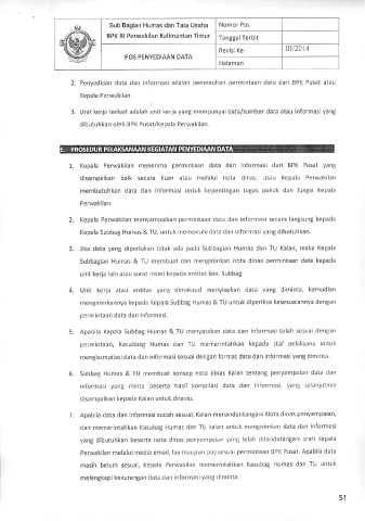 2. Penyediaan data dan informasi adalah pemenuhan permintaan data dari BPK Pusat atau